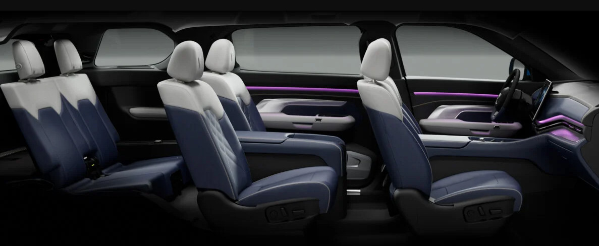 VF 9 có thiết kế nội thất rộng rãi, mềm mại tương ứng với kích thước của xe. Phiên bản Eco có 7 chỗ ngồi, ghế “bench” hàng 2 có 3 chỗ. Bản Plus có thêm 2 lựa chọn: 7 chỗ ngồi với ghế “bench” hàng 2 có 3 chỗ giống bản Eco hoặc 6 chỗ ngồi với hàng ghế thứ 2 tách rời kiểu thương gia.