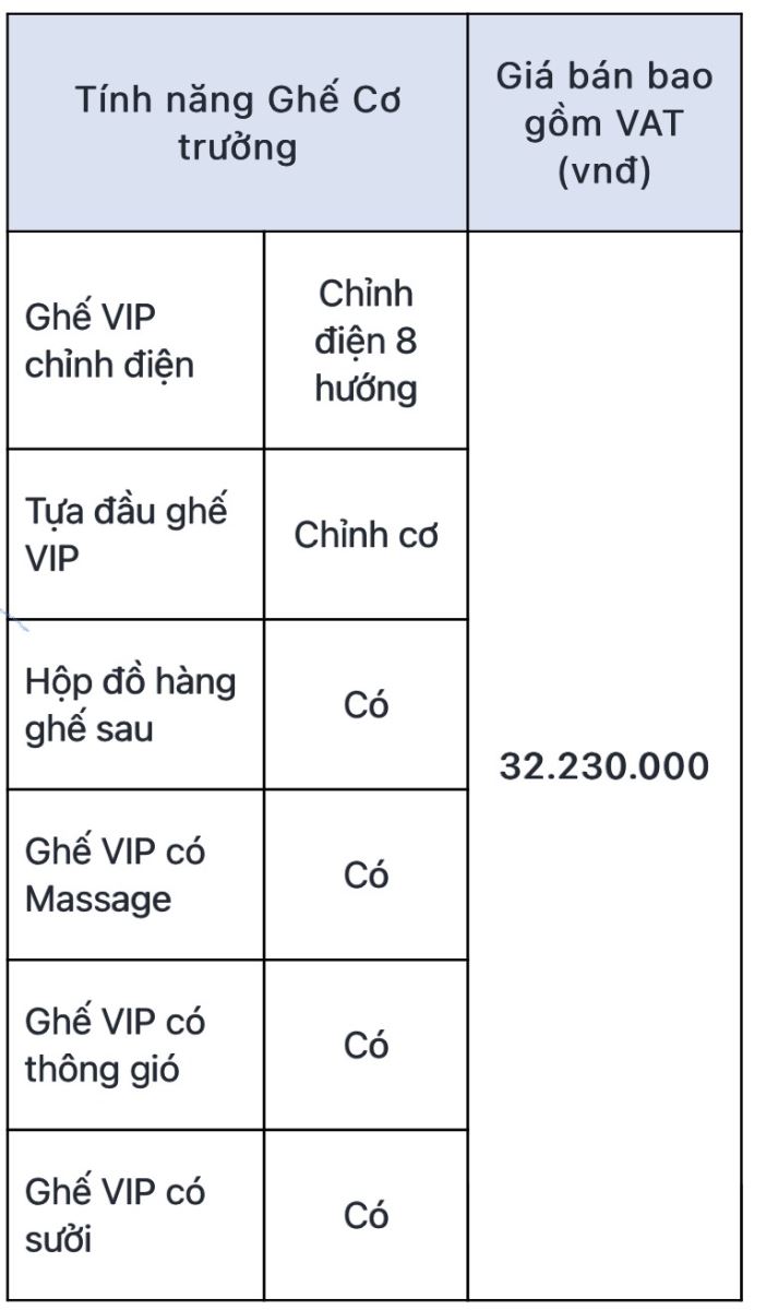 TUỲ CHỌN GHẾ CHUYÊN CƠ CHO VF9 PLUS