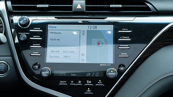 Về hệ thống tiện ích và giải trí, VinFast Lux nổi trội màn hình cảm ứng màn 10,4 inch so với màn hình 8 inch trên Camry. Hệ thống âm thanh của Lux A2.0 gồm 13 loa có âm-ly trong khi của Camry là 9 loa JBL. Và chức năng sạc không dây.