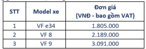 Hình thức thanh toán Thanh toán cùng phí thuê bao pin hàng tháng Ghi chú: Đơn giá sẽ thay đổi theo giá thị trường, khi có công bố từ Bộ Công Thương Đơn giá áp dụng từ ngày ban hành cho đến khi có thông báo mới.
