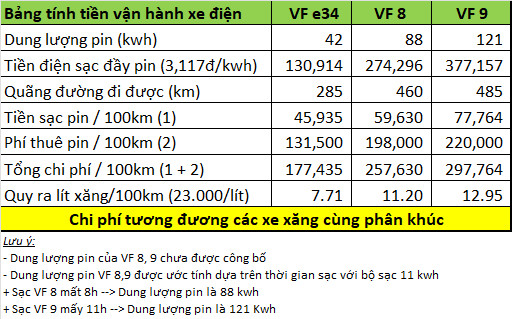 1. Chi phí điện/Km của xe VinFast và chi phí xăng/Km của các xe xăng có công suất tương đương trên thị trường sẽ được tính toán khoa học và minh bạch.