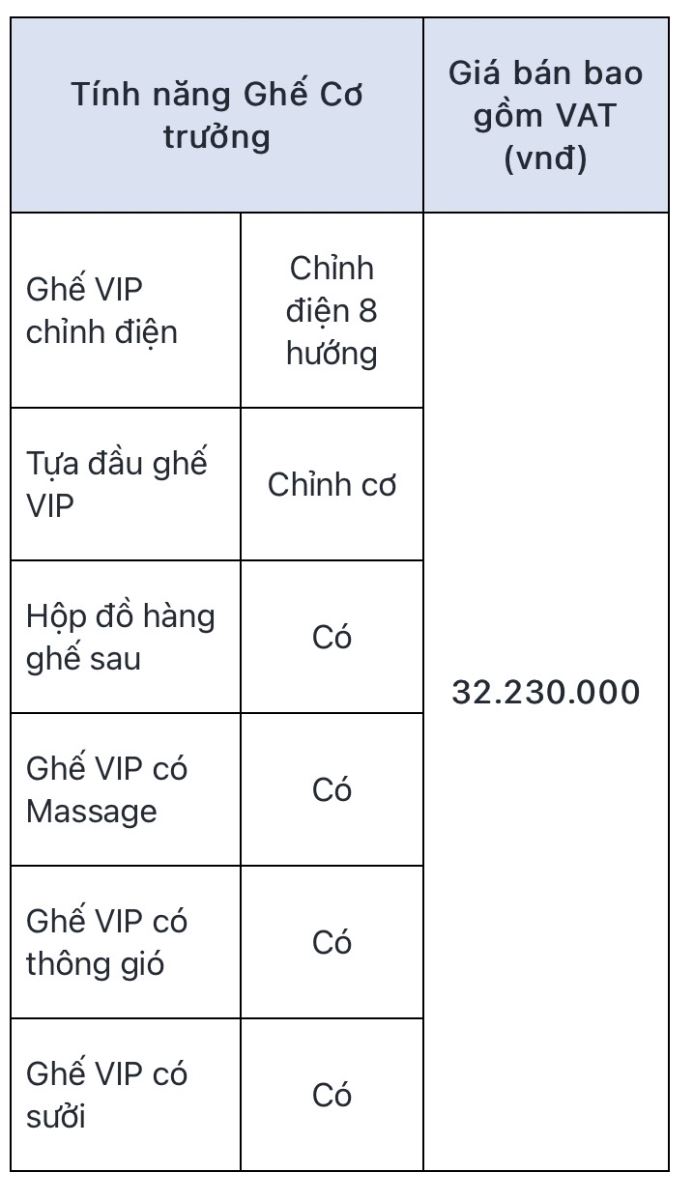 Các KH đã đặt xe được quyền lựa chọn nâng cấp option Ghế Cơ trưởng. Quý khách đã cọc tuỳ chọn thêm option Ghế Cơ trưởng vui lòng liên hệ Showroom hoặc Nhà Phân Phối nới đặt cọc để được hướng dẫn cụ thể.
