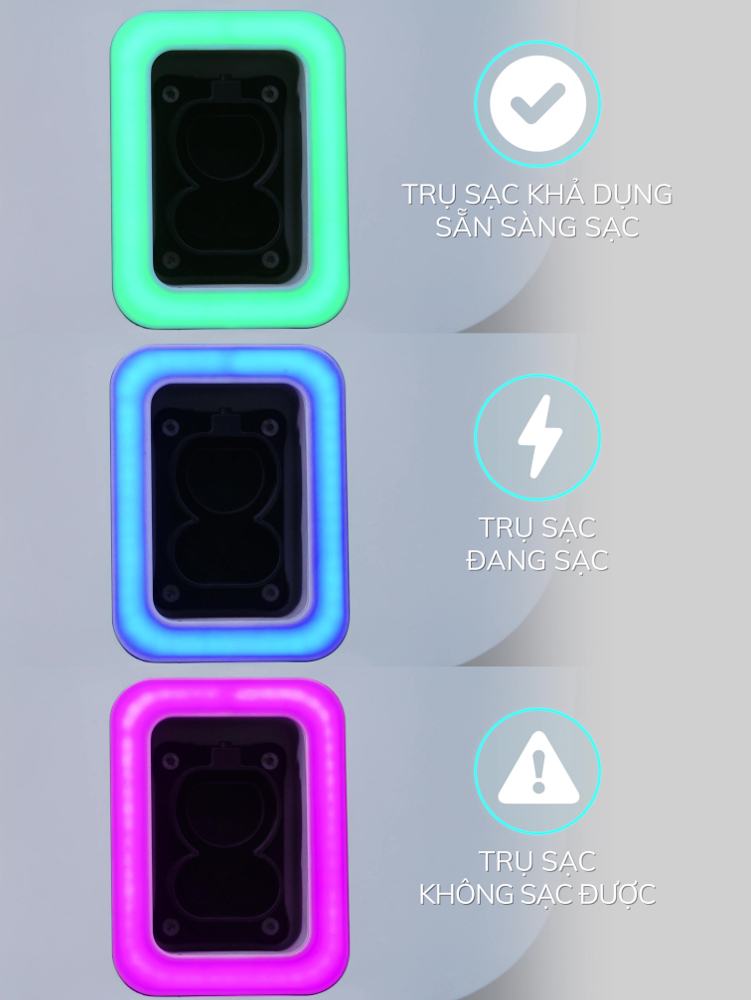 Đèn LED màu đỏ hoặc không sáng đèn: Trụ sạc không khả dụng.