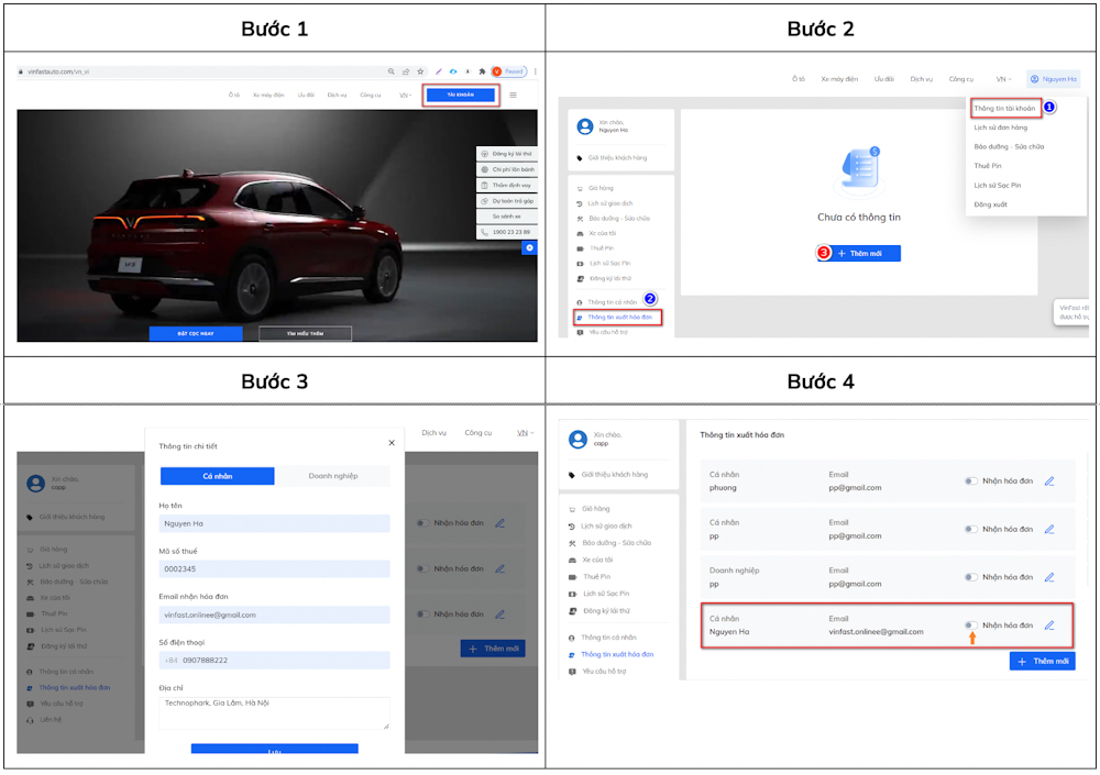 Bước 2: Truy cập “Thông tin tài khoản” → “Thông tin xuất hóa đơn” → “Thêm mới”