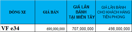 Giá lăn bánh xe điện VF e34 tạm tính như sau: