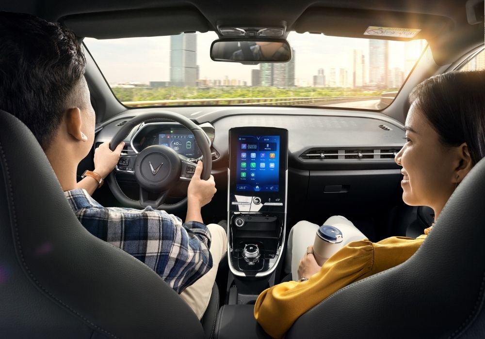 Nổi bật trong khoang nội thất của VF e34 là màn hình giải trí cảm ứng kích thước 10 inch sắc nét, hạn chế nút bấm vật lý thông thường, mang đến trải nghiệm tuyệt vời cho người sử dụng.